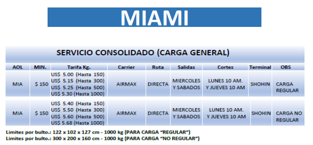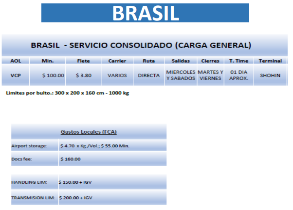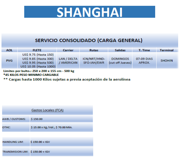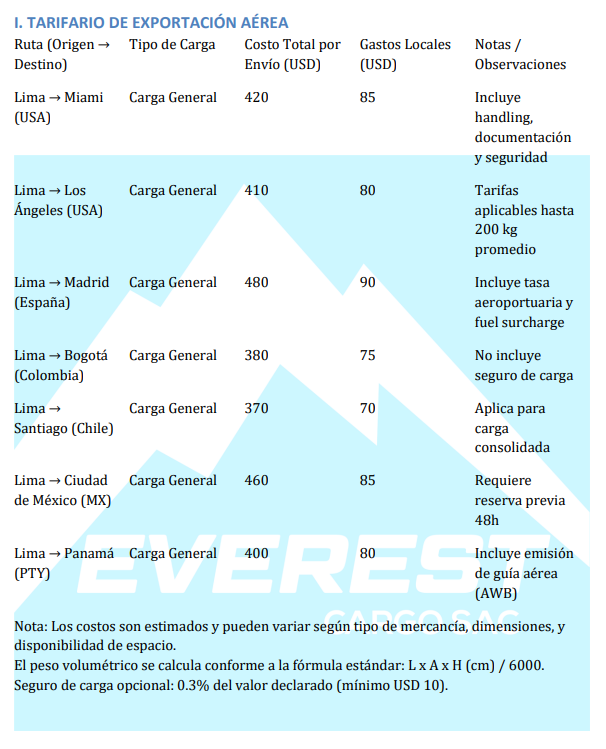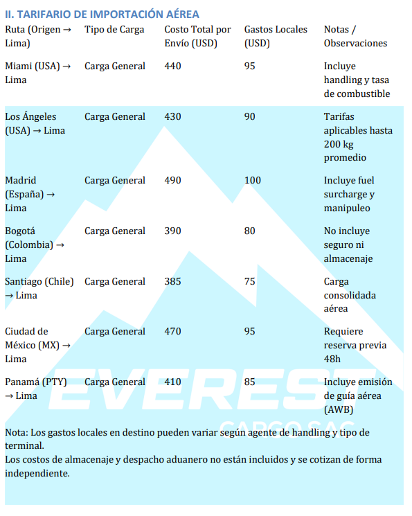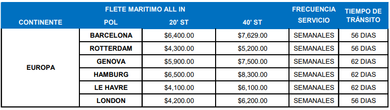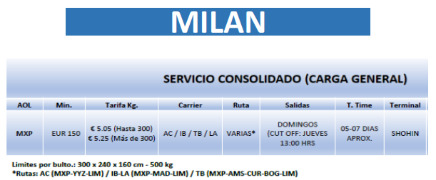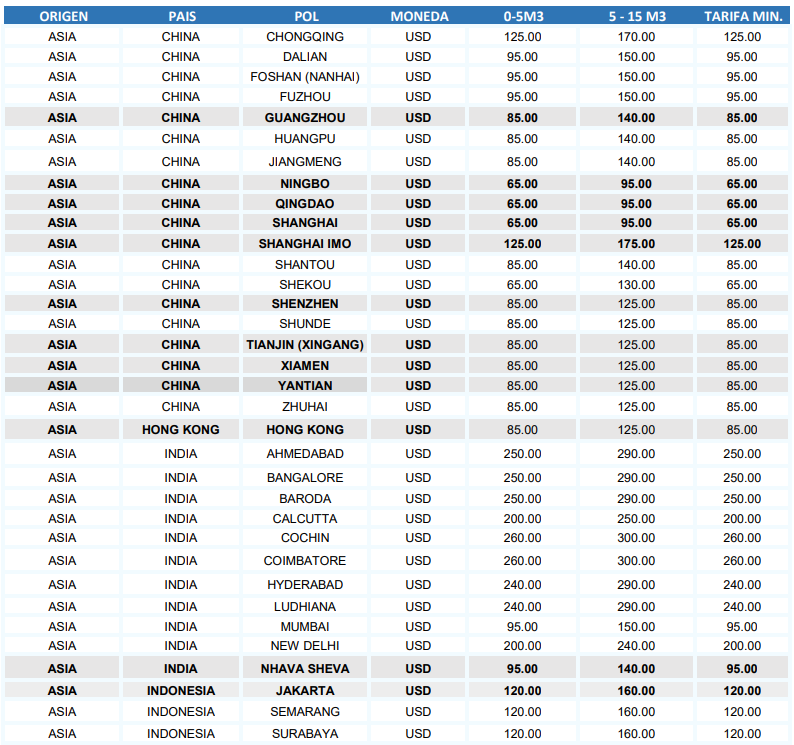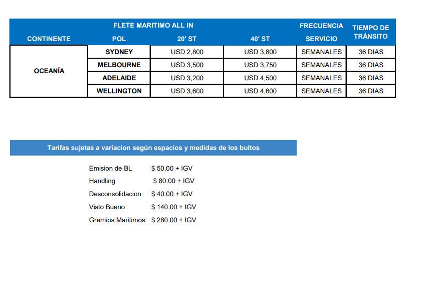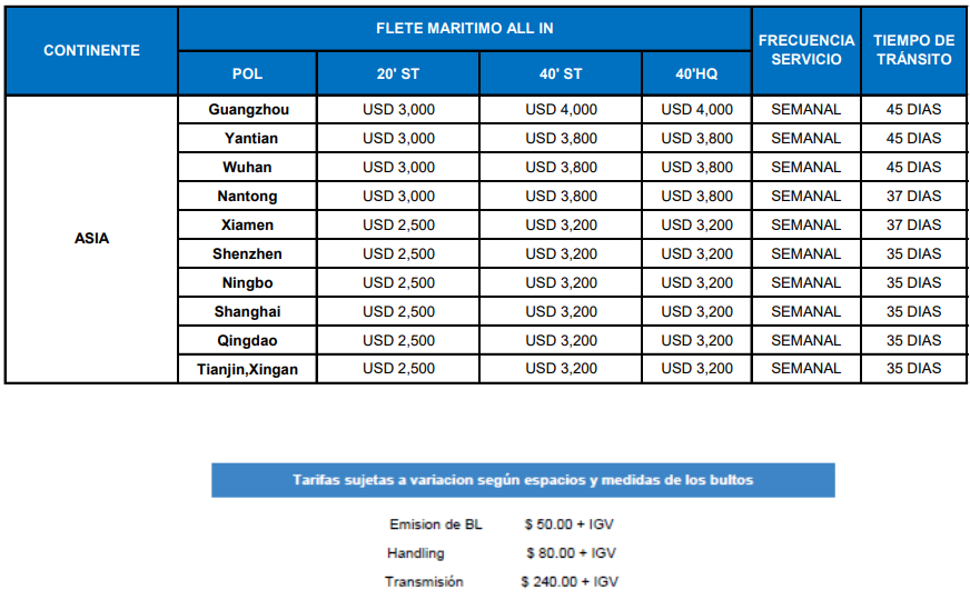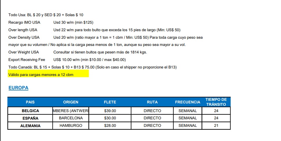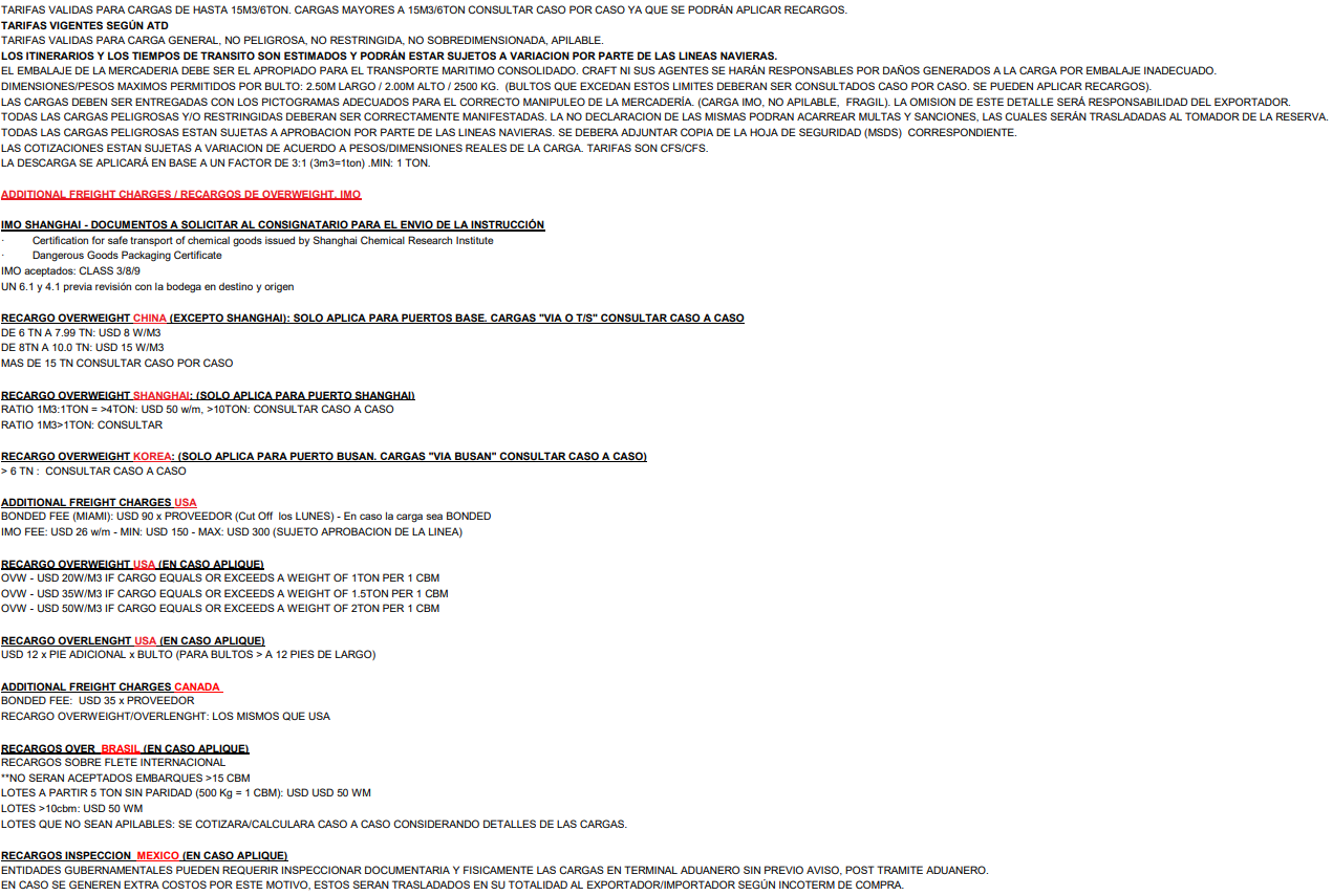 TARIFARIO - IMPORTACION MARITIMA LCL