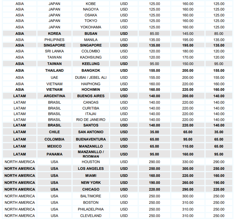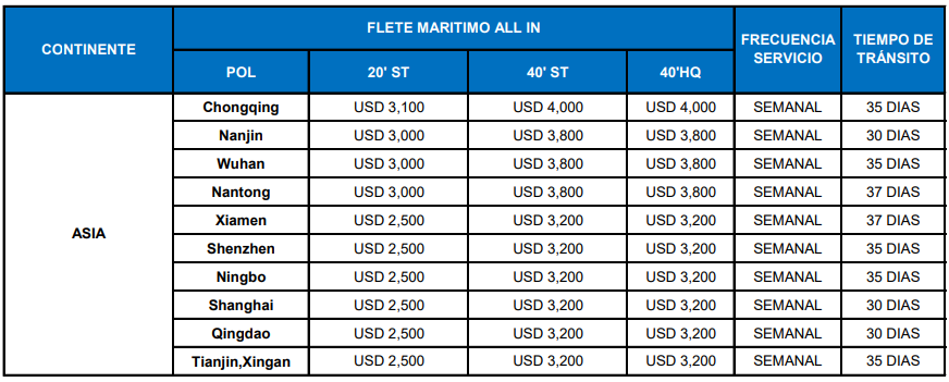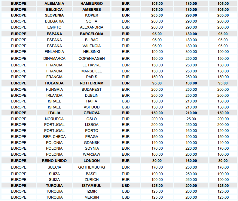 TARIFARIO - IMPORTACION MARITIMA FCL