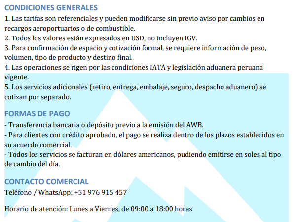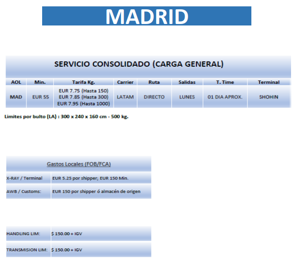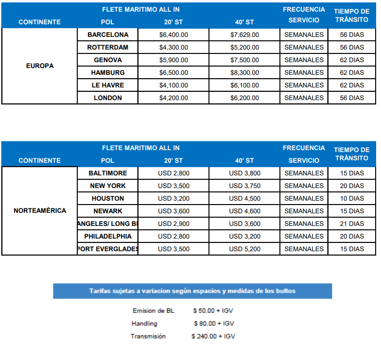 TARIFARIO - IMPORTACION MARITIMA LCL