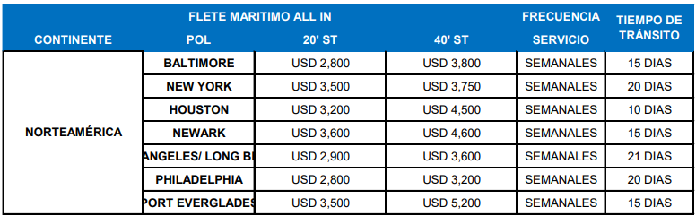 TARIFARIO - IMPORTACION MARITIMA FCL